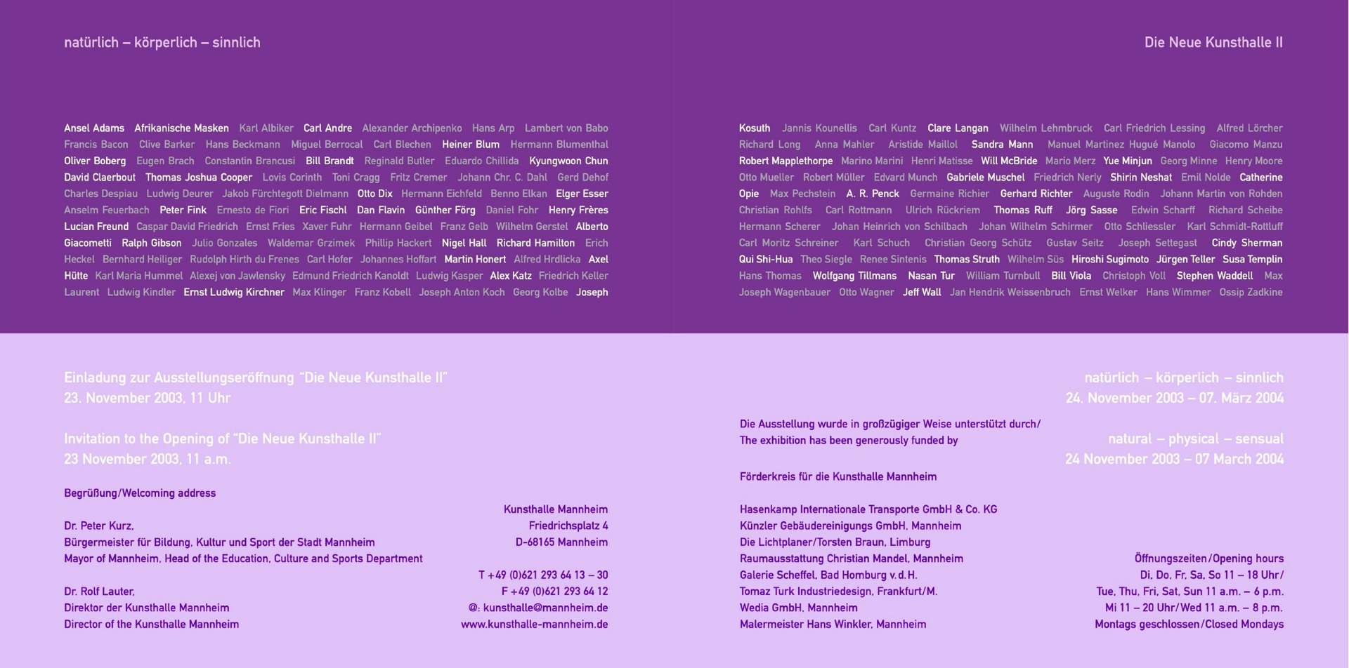 Rolf Lauter: Die Neue Kunsthalle II: natürlich - körperlich - sinnlich / The New Kunsthalle II: natural - physical - sensual, Invitation, Kunsthalle Mannheim 2003/2004.